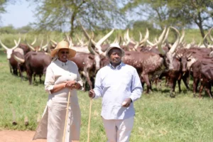 Tourists visiting the palace often gather to watch the cattle as they move slowly across the grounds, their long horns rising prominently above their heads. The sight provides a glimpse into a pastoral tradition that continues to shape Rwanda’s cultural identity.